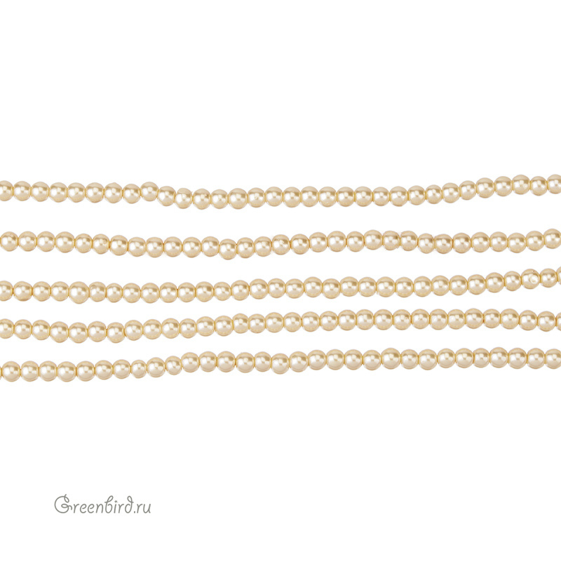 Жемчуг Crystalbird, круглой формы. Материал: стеклянная бусина-основа, покрытая цветным слоем. Размер: примерно 3 мм, отверстие: 0,8 мм. Цвет: Light Gold (#33). Цена указана за нить 38-39 см.
