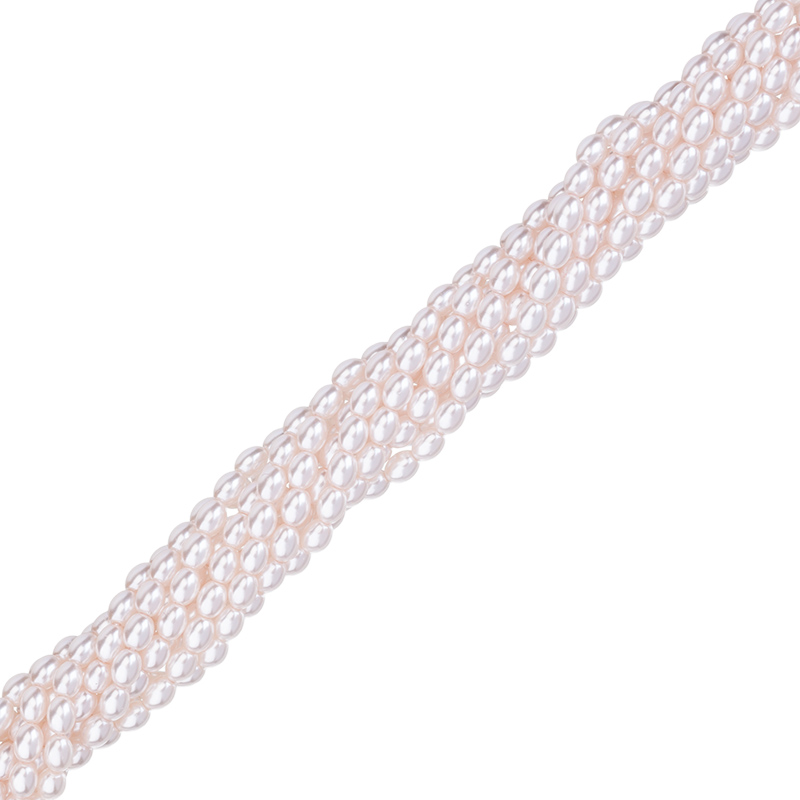 Жемчуг Crystalbird, овальной или удлиненной формы, вытянутый вдоль отверстия. Материал: стеклянная бусина-основа, покрытая цветным слоем. Размер: примерно 3,5 x 4,5 мм, отверстие: 0,8 мм. Цвет: Cream Rose Light (#89). Цена указана за нить 38-39 см.