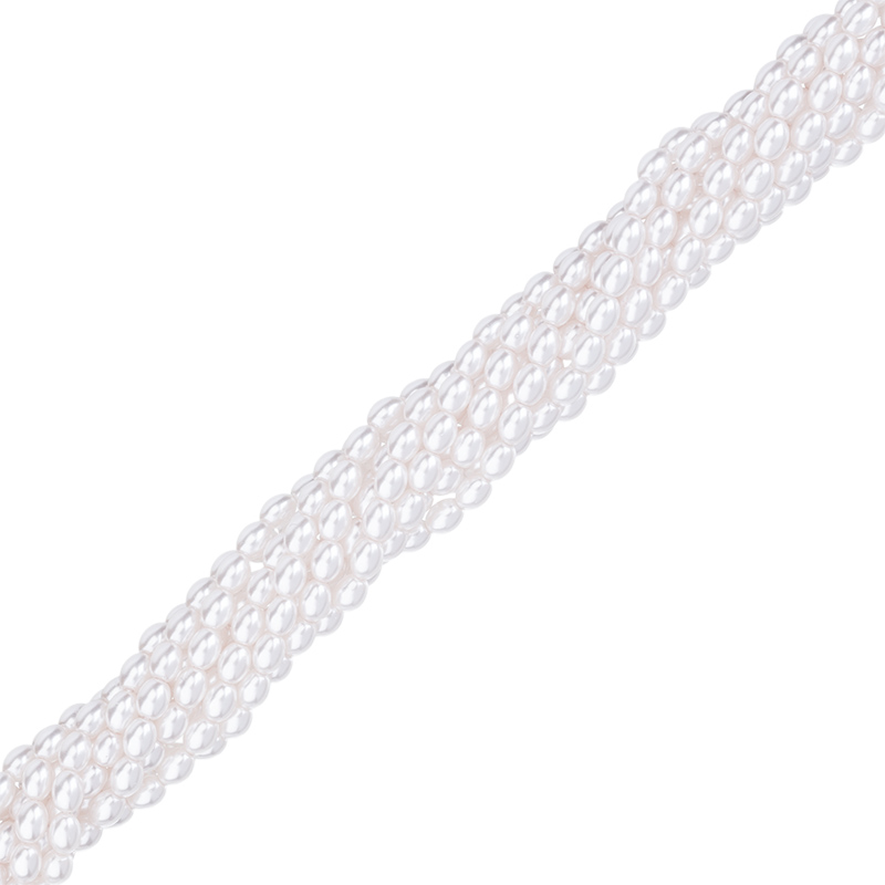 Жемчуг Crystalbird, овальной или удлиненной формы, вытянутый вдоль отверстия. Материал: стеклянная бусина-основа, покрытая цветным слоем. Размер: примерно 3,5 x 4,5 мм, отверстие: 0,8 мм. Цвет: Snow White (#84). Цена указана за нить 38-39 см.