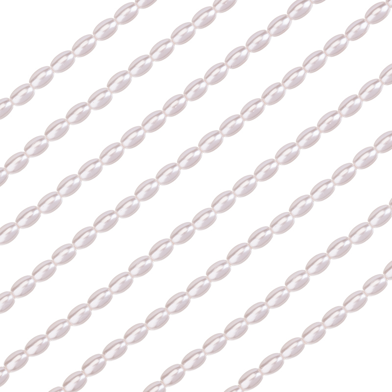 Жемчуг Crystalbird, овальной или удлиненной формы, вытянутый вдоль отверстия. Материал: стеклянная бусина-основа, покрытая цветным слоем. Размер: примерно 4 x 6 мм, отверстие: 0,8 мм. Цвет: Cream Rose Light (#89). Цена указана за нить 38-39 см.