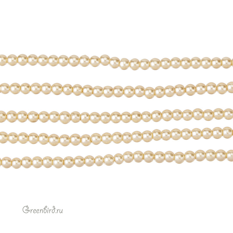 Жемчуг Crystalbird, круглой формы. Материал: стеклянная бусина-основа, покрытая цветным слоем. Размер: примерно 5 мм, отверстие: 0,8 мм. Цвет: Light Gold (#33). Цена указана за нить 38-39 см.