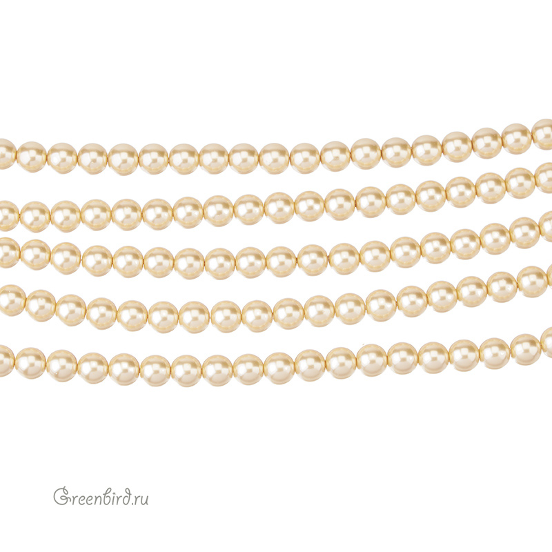 Жемчуг Crystalbird, круглой формы. Материал: стеклянная бусина-основа, покрытая цветным слоем. Размер: примерно 6 мм, отверстие: 0,8 мм. Цвет: Light Gold (#33). Цена указана за нить 38-39 см.