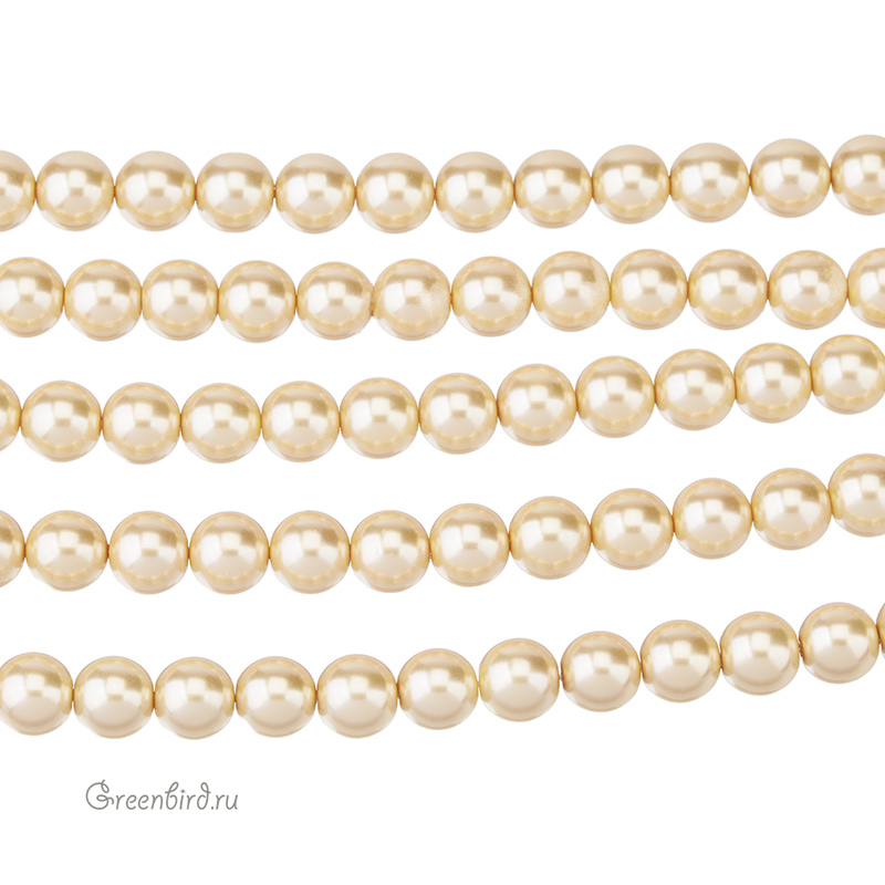 Жемчуг Crystalbird, круглой формы. Материал: стеклянная бусина-основа, покрытая цветным слоем. Размер: примерно 10 мм, отверстие: 0,8 мм. Цвет: Light Gold (#33). Цена указана за нить 38-39 см.