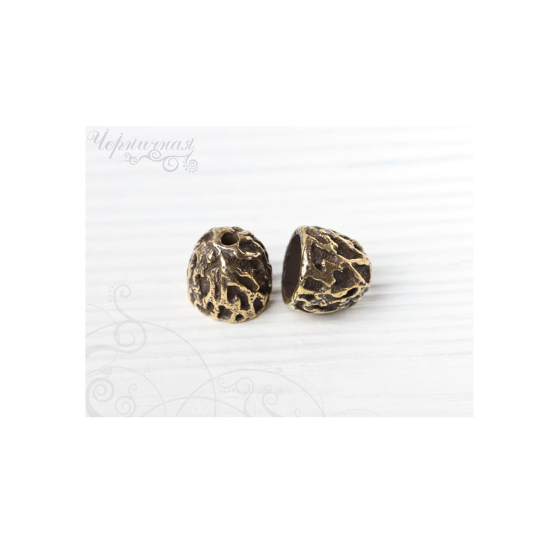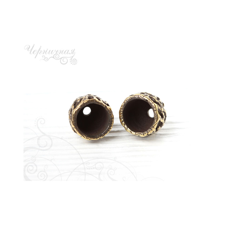 Авторская фурнитура Анны Черных - концевик для вклейки шнуров или лент. Размер: 12,3 х 11,5 мм, внутренний диаметр примерно 8,8 мм, отверстие: 2,1 мм. Материал: античная латунь. Производство: Россия. Цена указана за 1 шт.