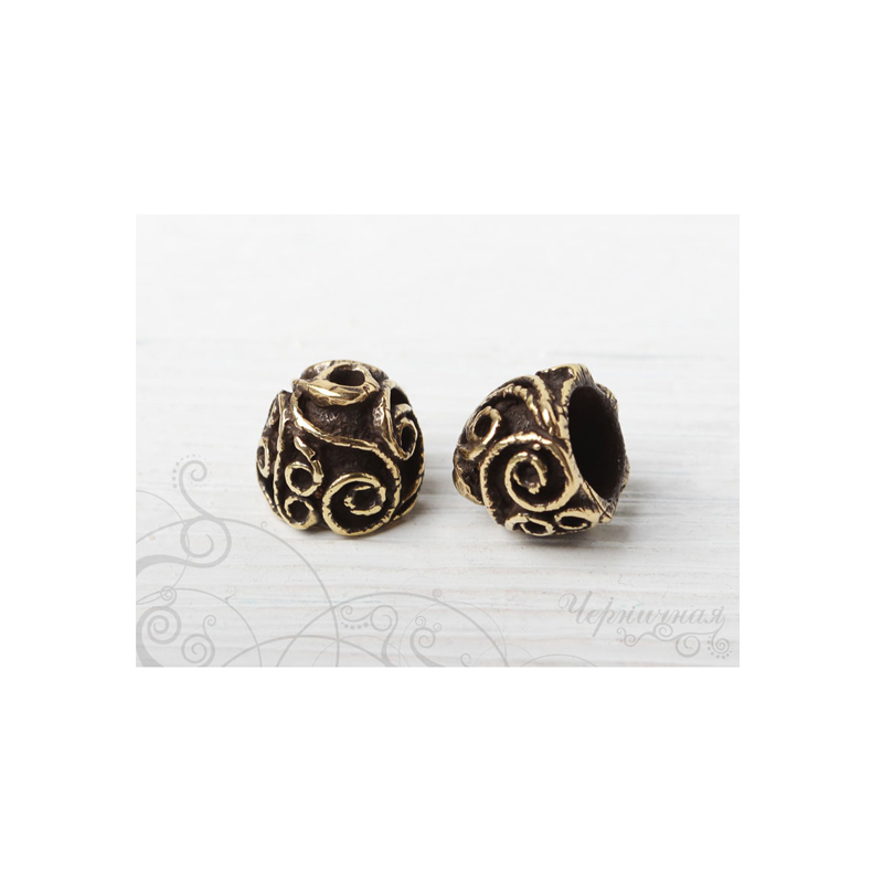 Авторская фурнитура Анны Черных - концевик для вклейки шнуров или лент. Размер: 13,6 х 12 мм, внутренний диаметр примерно 8,7 мм, отверстие: 2,1 мм. Материал: античная латунь. Производство: Россия. Цена указана за 1 шт.