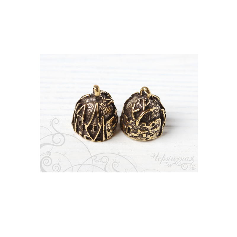 Авторская фурнитура Анны Черных - концевик для вклейки шнуров или лент. Размер: 14,2 х 16,8 мм, внутренний диаметр: 10,3 мм, глубина примерно 10 мм, петля: 1,4 мм. Материал: античная латунь. Производство: Россия. Цена указана за 1 шт.