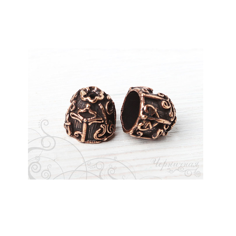 Авторская фурнитура Анны Черных - концевик для вклейки шнуров или лент. Размер: 14,8 х 13,5 мм, внутренний диаметр примерно 10,5 мм, отверстие: 2,2 мм. Материал: античная бронза. Производство: Россия. Цена указана за 1 шт.