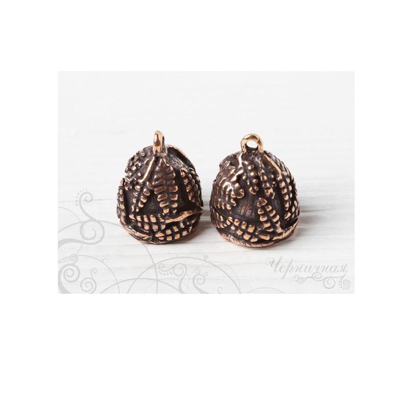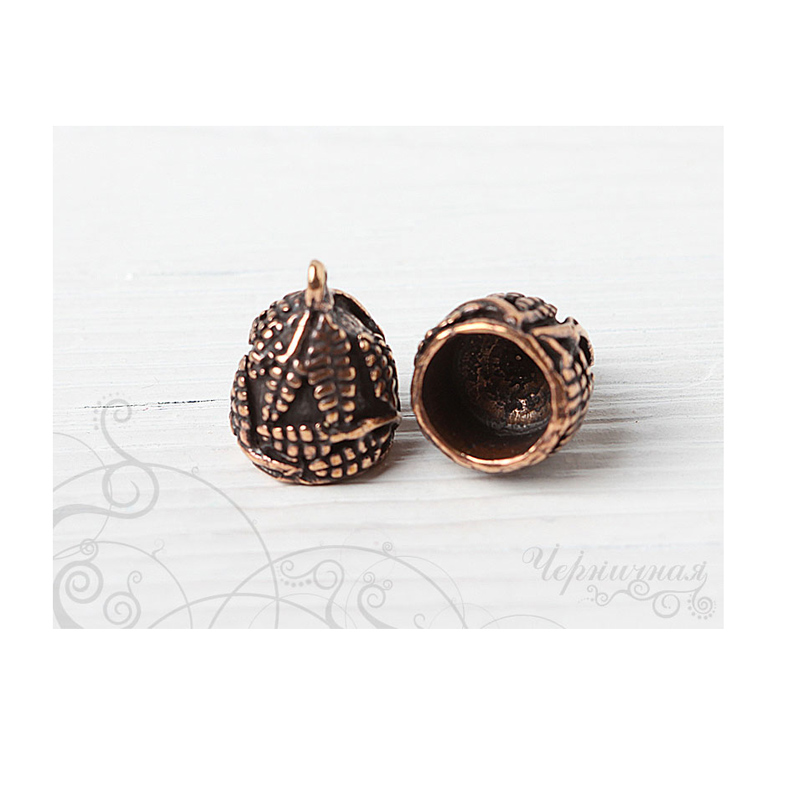 Авторская фурнитура Анны Черных - концевик для вклейки шнуров или лент. Размер: 14,5 х 17,9 мм, внутренний диаметр: 10,6 мм, глубина примерно 10 мм, петля: 1,4-1,7 мм. Материал: античная бронза. Производство: Россия. Цена указана за 1 шт.