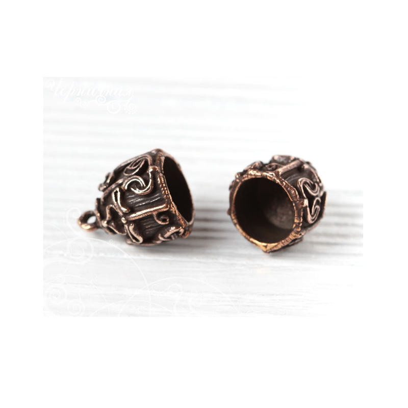 Авторская фурнитура Анны Черных - концевик для вклейки шнуров или лент. Размер: 14,6 х 17,8 мм, внутренний диаметр: 10,5 мм, глубина примерно 10 мм, петля: 1,3-1,5 мм. Материал: античная бронза. Производство: Россия. Цена указана за 1 шт.