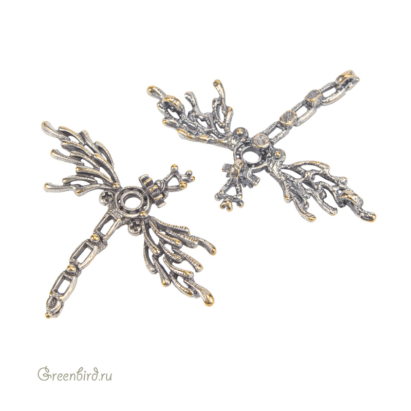 Авторская фурнитура Анны Черных - центральный элемент. Размер: 55,5 х 41 мм, центральные отверстия: 3,3 мм (круглое), 2,1 х 2,3 мм (треугольник) и примерно 1,7 х 3,5 мм, петли на обороте: 2,2-2,5 мм. Материал: латунь, покрытие: винтаж (серебро). Производство: Россия. Цена указана за 1 шт.