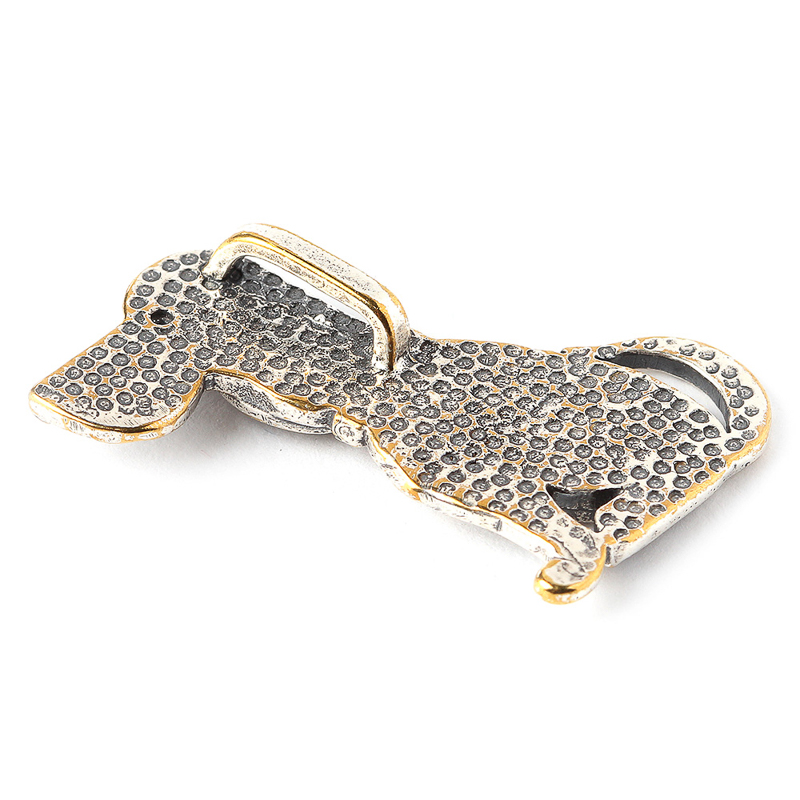Авторская фурнитура Анны Черных - подвеска односторонняя в виде собачки с петлей на обороте. Подходит для надевания на ленту или плоский шнур. Размер: 22,7 х 28,4 мм, петля: 7,9 х 2,3 мм. Материал: латунь, покрытие: винтаж (серебро). Производство: Россия. Цена указана за 1 шт.
