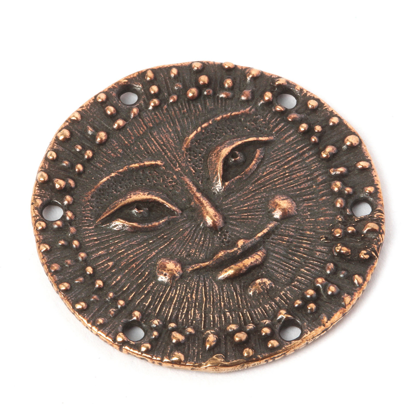 Авторская фурнитура Анны Черных - подвеска плоская в виде улыбающегося солнца (луны). Размер: 30,5 х 1,8 мм, 6 отверстий: 1,6-1,8 мм. Материал: античная бронза. Производство: Россия. Цена указана за 1 шт.