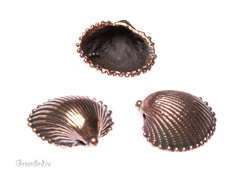 Авторская фурнитура Анны Черных - подвеска в форме ракушки. Размер: 16,6 х 17,7 х 5,7 мм, отверстия примерно 1 мм. Материал: античная бронза. Производство: Россия. Цена указана за 1 шт.