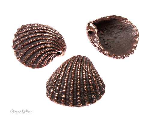 Авторская фурнитура Анны Черных - подвеска в форме ракушки. Размер: 22,8 х 21,9 х 8,8 мм, отверстия: 1,5 и 1,7 мм. Материал: античная бронза. Производство: Россия. Цена указана за 1 шт.
