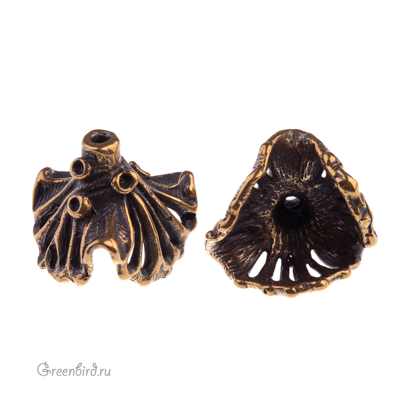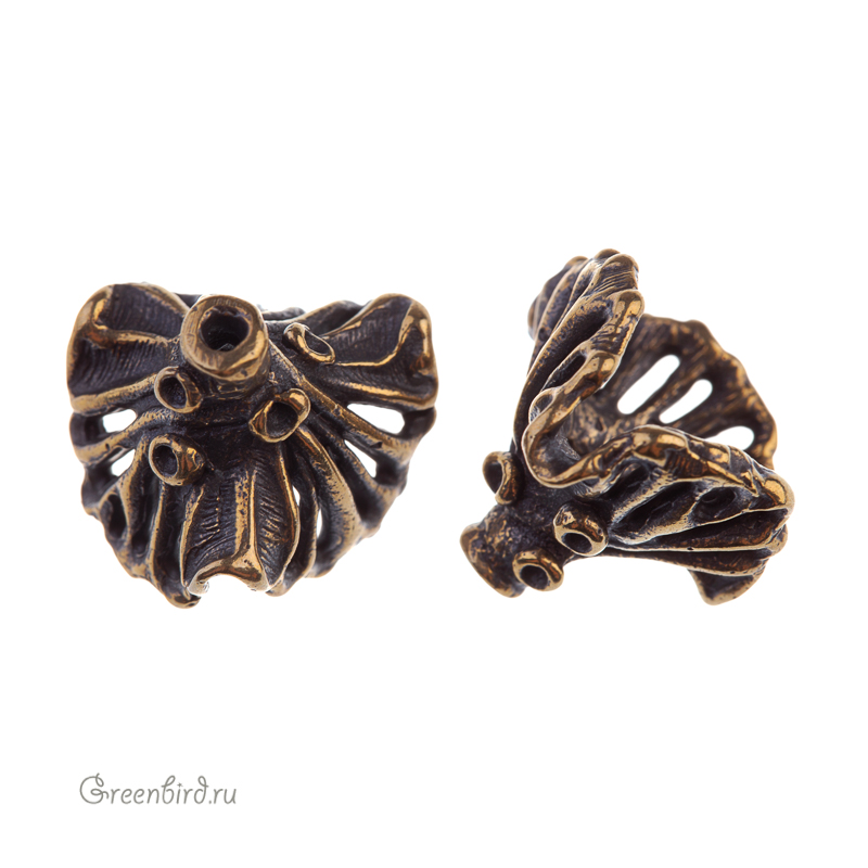 Авторская фурнитура Анны Черных - объемная чашечка для бусины. Размер: 17,2 х 17 х 13,5 мм, максимальный внутренний размер примерно 14,5 мм, отверстие: 1,5 мм. Материал: античная латунь. Производство: Россия. Цена указана за 1 шт.