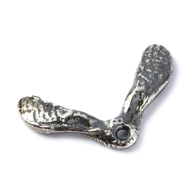 Авторская фурнитура Анны Черных - миниатюрная подвеска в форме семян клена. Размер: 17,5 х 11 х 2,1 мм, отверстие: 0,9 мм. Материал: латунь, покрытие: античное серебро. Производство: Россия. Цена указана за 1 шт.