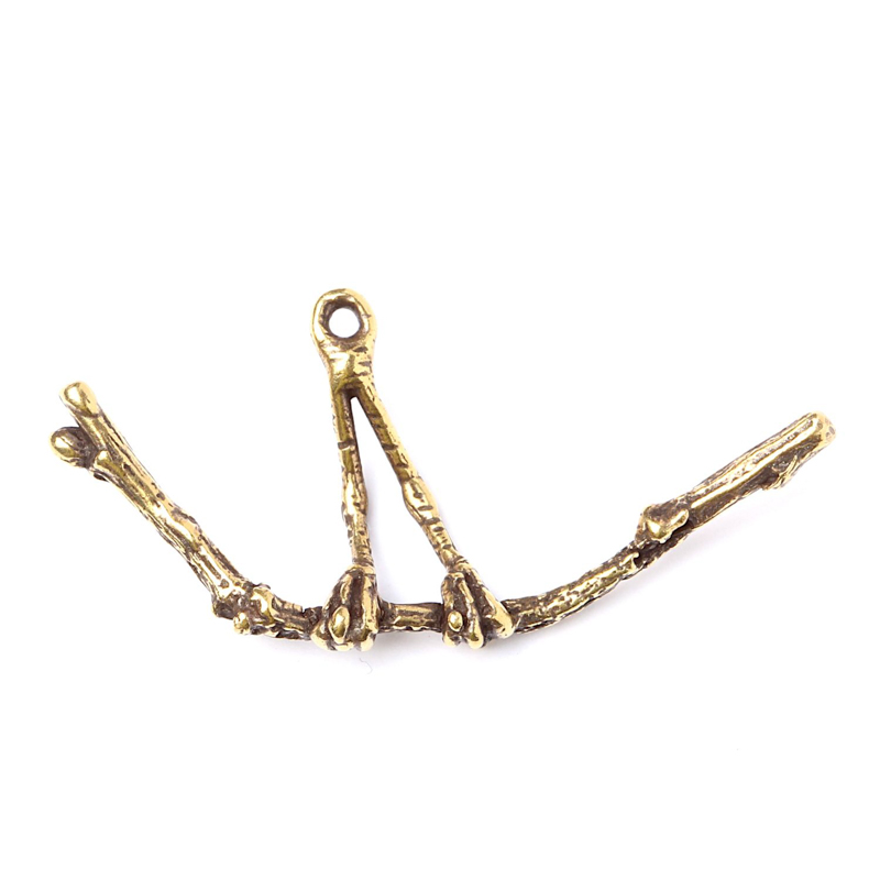 Авторская фурнитура Анны Черных - подвеска в форме птичьих лапок на ветке. Размер: 40,3 х 18,2 х 3,5 мм, расстояние между лапками примерно 3,4 мм, отверстие петли: 1,3 мм. Материал: античная латунь. Производство: Россия. Цена указана за 1 шт.