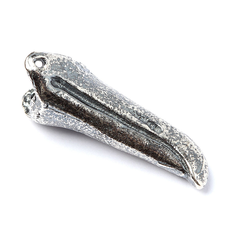 Авторская фурнитура Анны Черных - двусторонний центральный элемент (клюв морской птицы - чайка, альбатрос, пингвин). Размер: 23,6 х 8,1 мм, толщина в самом широком месте: 9,4 мм, торцевое отверстие примерно 5,5 х 4,9 мм, отверстия: 0,7 мм. Материал: латунь, покрытие: античное серебро. Производство: Россия. Цена указана за 1 шт.