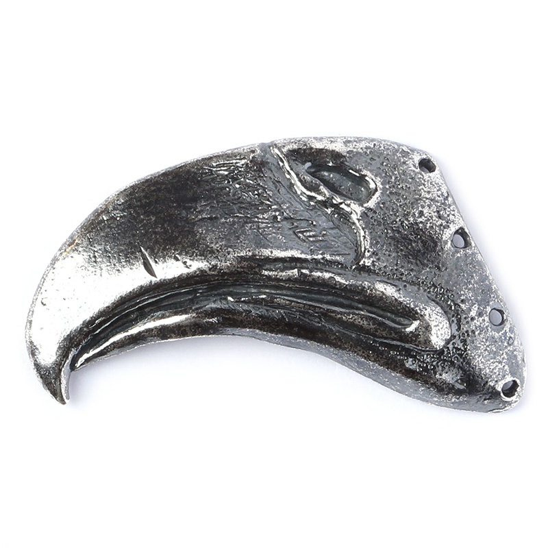 Авторская фурнитура Анны Черных - центральный элемент (клюв хищной птицы, орла или коршуна). Размер: 35,5 х 18,6 мм, толщина: 4,4 мм, отверстия примерно 0,8 мм. Материал: латунь, покрытие: античное серебро. Производство: Россия. Цена указана за 1 шт.