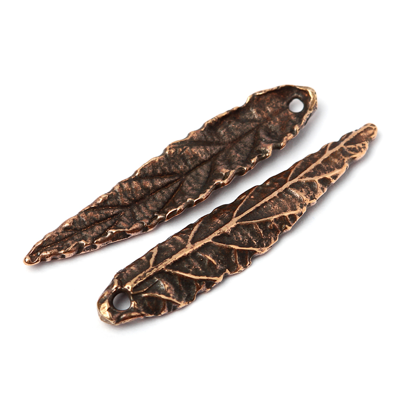 Авторская фурнитура Анны Черных - подвеска в форме продолговатого листа. Размер: 5,4 х 26,5 мм, толщина примерно 1,7 мм, отверстие: 1,2 мм. Материал: античная бронза. Производство: Россия. Цена указана за 1 шт.