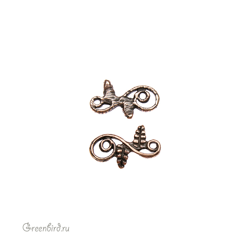 Авторская фурнитура Анны Черных - коннекторы зеркальные. Размеры с петлями: 11,6 х 11,8 х 2 мм, колечки: 1,1 до 1,7 мм. Размеры и форма в паре могут незначительно отличаться. Материал: античная бронза. Производство: Россия. Цена указана за пару.