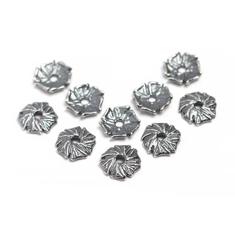 Авторская фурнитура Анны Черных - чашечка для бусины. Размер: 11,4 х 2,6 мм, внутренний размер примерно 9,8 мм, центральное отверстие: 1,9-2 мм. Материал: латунь, покрытие: античное серебро. Производство: Россия. Цена указана за 1 шт.