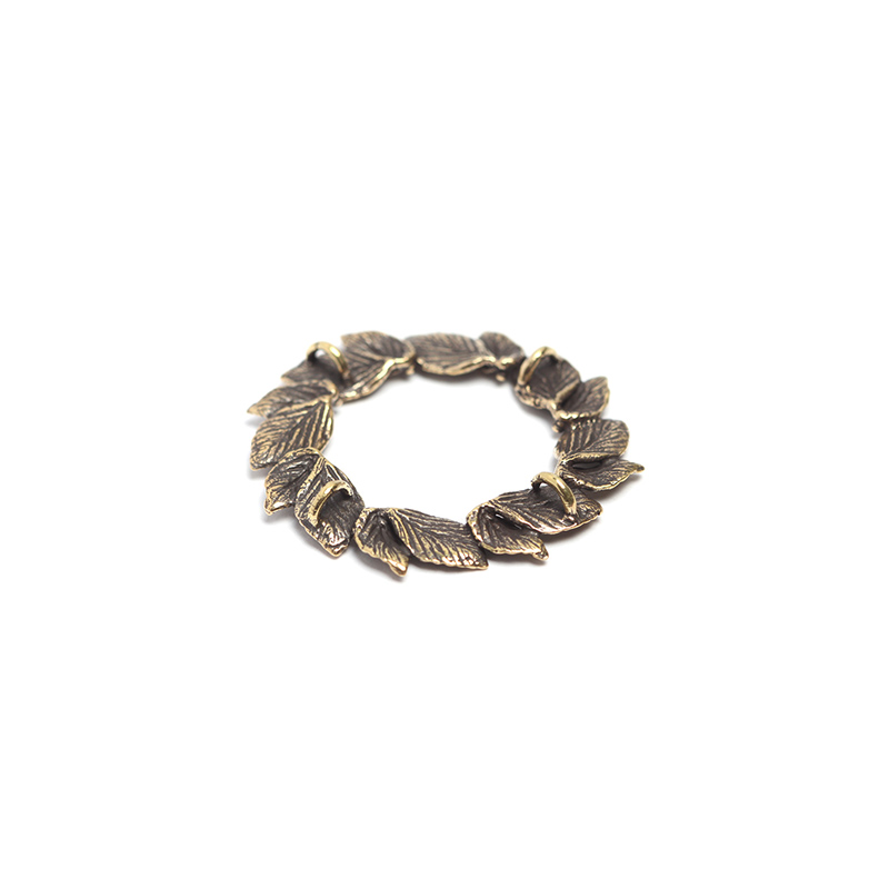 Авторская фурнитура Анны Черных - центральный элемент в виде кольца из листьев. Диаметр: 41,5 мм, внутренний диаметр примерно 25,7 мм, четыре петли на обороте: 4,2 х 2,2 мм. Материал: античная латунь. Производство: Россия. Цена указана за 1 шт.