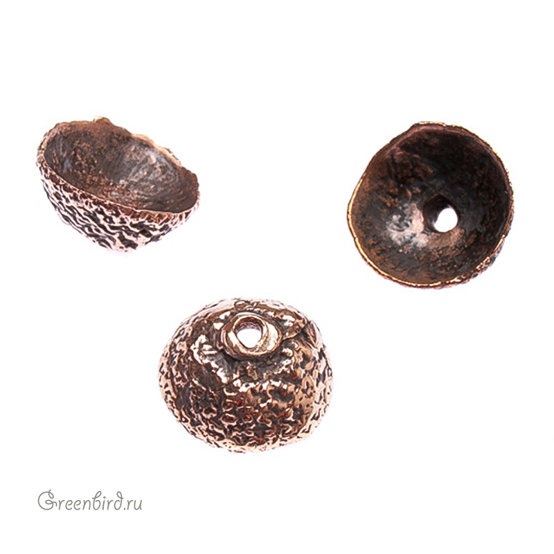 Авторская фурнитура Анны Черных - чашечка. Размер: 12,6 мм, высота: 5,6 мм, максимальный внутренний диаметр: 10,8 мм, отверстие: 1,9 мм. Материал: античная бронза. Производство: Россия. Цена указана за 1 шт.