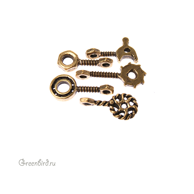 Авторская фурнитура Анны Черных - набор подвесок разных форм. Размер: 15,9 х 8,4 мм, 17 х 6,8 мм, 21,7 х 8,7 мм (отверстие 2,2 мм), 19,3 х 8,1 мм (отверстие 3,6 мм) и 17,4 х 8,7 мм (отверстия 0,8-1,3 мм), внутренний размер колечек: 1,6-1,8 мм. Материал: античная латунь. Производство: Россия. Цена указана за набор (5 штук).