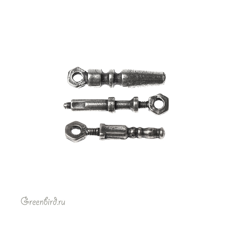 Авторская фурнитура Анны Черных - набор подвесок разной формы. Размер: 4,4 х 20,1 мм, 3,5 х 22,1 мм, 3,6 х 20,5 мм; петли (внешний размер): 4,9 х 1,8 мм, внутренний диаметр: 1,6 мм. Материал: латунь, покрытие: античное серебро. Производство: Россия. Цена указана за набор (3 штуки).