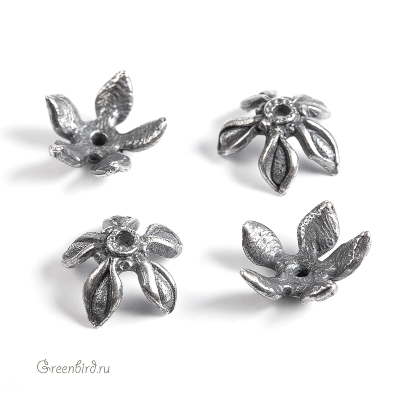 Авторская фурнитура Анны Черных - чашечка. Размер: 16,6 х 18,9 мм, высота: 8,2 мм, отверстие: 1,9 мм, внутренний размер примерно 15,5 мм. Материал: латунь, покрытие: античное серебро. Производство: Россия. Цена указана за 1 шт.