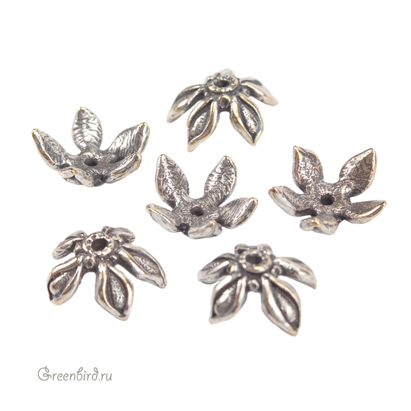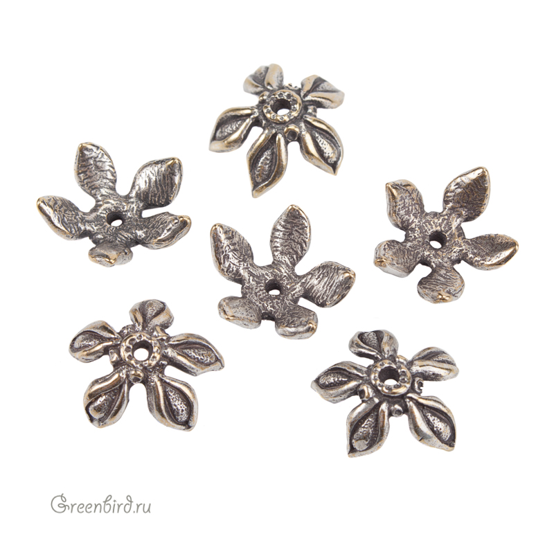 Авторская фурнитура Анны Черных - чашечка. Размер: 16,6 х 18,9 мм, высота: 8,2 мм, отверстие: 1,9 мм, внутренний размер примерно 15,5 мм. Материал: латунь, покрытие: винтаж (серебро). Производство: Россия. Цена указана за 1 шт.