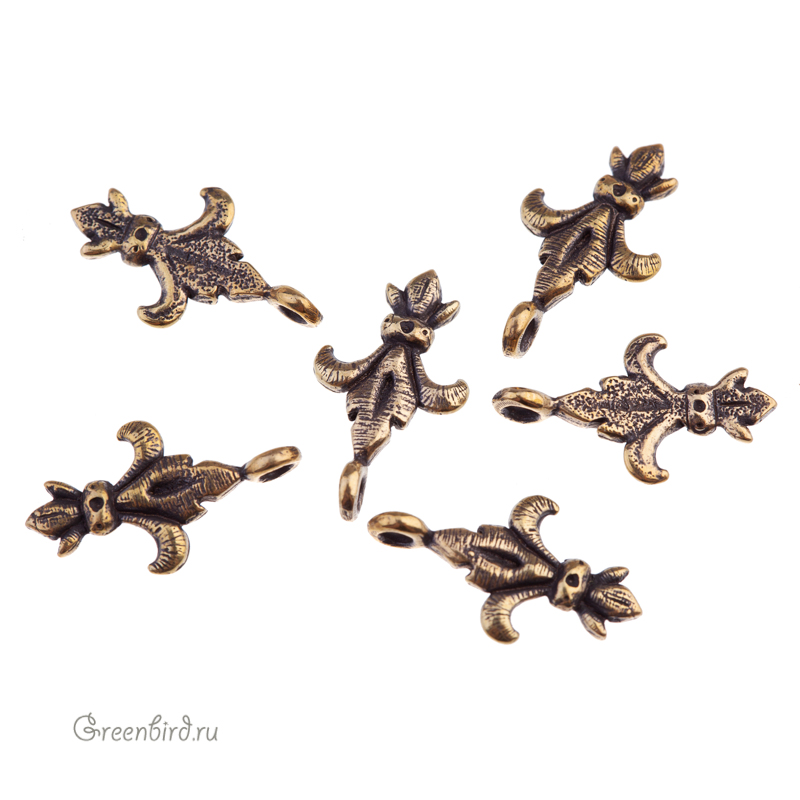 Авторская фурнитура Анны Черных - подвеска в форме геральдической лилии. Размер: 9,8 х 17,4 мм, толщина декоративного элемента: 1,8 мм, колечко: 1,7 мм. Материал: античная латунь. Производство: Россия. Цена указана за 1 шт.
