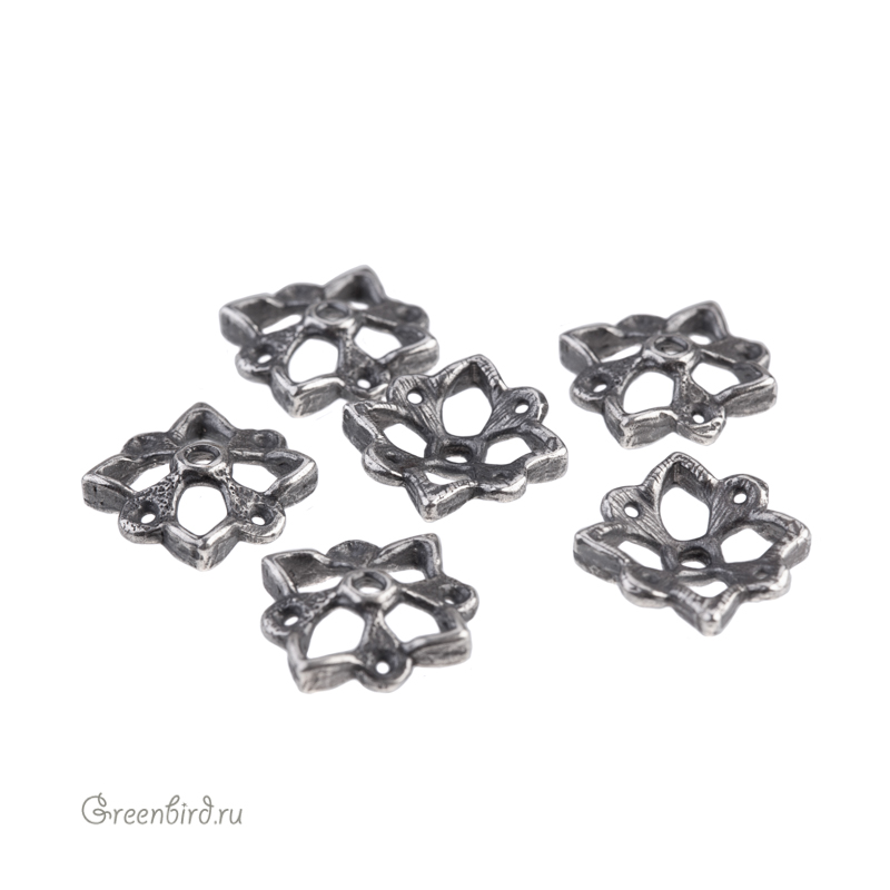 Авторская фурнитура Анны Черных - чашечка. Размер: 11 х 11,1 мм, толщина: 3 мм, центральное отверстие: 1,3 мм. Материал: латунь, покрытие: античное серебро. Производство: Россия. Цена указана за 1 шт.