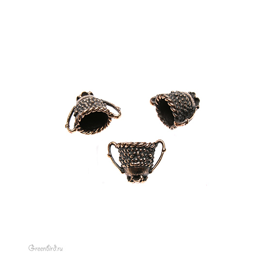 Авторская фурнитура Анны Черных - чашечка-коннектор. Размер с ручками-петельками: 17,5 х 11,5 мм, высота: 12,7 мм, отверстие: 2 мм, внутренний диаметр: 8 мм, глубина примерно 10 мм. Материал: античная бронза. Производство: Россия. Цена указана за 1 шт.