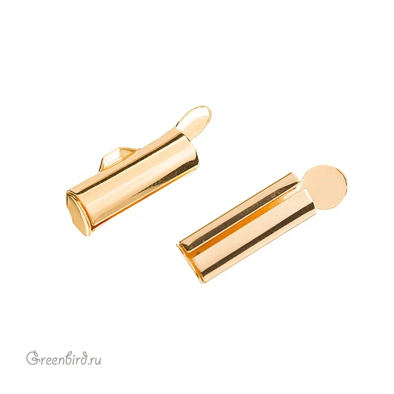 Фурнитура для бижутерии - концевик для бисерного полотна, стразовой цепочки. Идеально подходит для завершения изделий, сплетенных из японского бисера Delica 11/0. В ширину концевика помещается 8 цилиндрических бисерин . Материал: латунь, покрытие: золото. Размер: 14 х 6 х 5 мм, петелька: 1,3 х 3 мм. Производство: Китай. Цена указана за 1 штуку.
