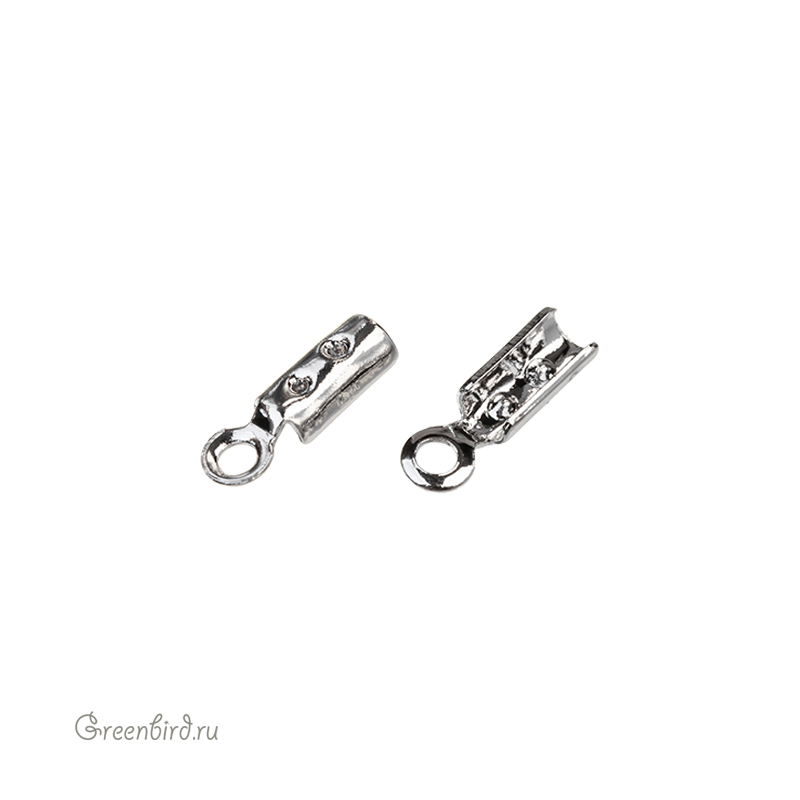 Фурнитура для бижутерии - концевик для тонкой цепочки или шнура. Материал: латунь, покрытие: родий. Размер с колечком в открытом виде: 2,3 x 8,1 х 1,7 мм, колечко: 1,1 мм. Подходит для цепочки или шнура диаметром 1 мм. Производство: Корея. Цена указана за 1 штуку.