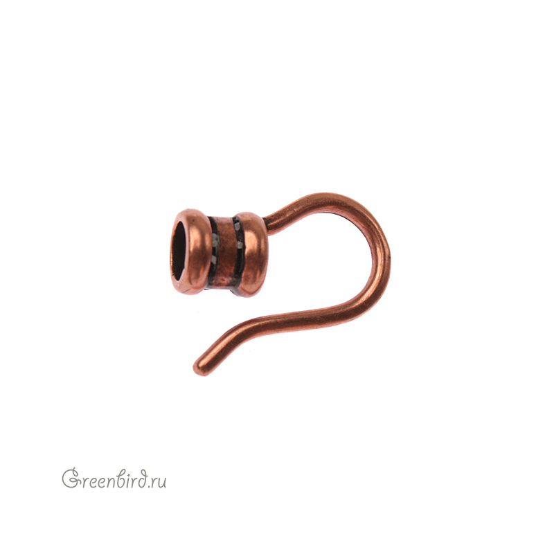 Наконечник-кримп с крючком - концевик для шнура, материал: латунь, цвет: античная медь, размер: 15 х 5 мм; отверстие: 3,6 мм. Производство: Израиль. Цена указана за 1 шт.