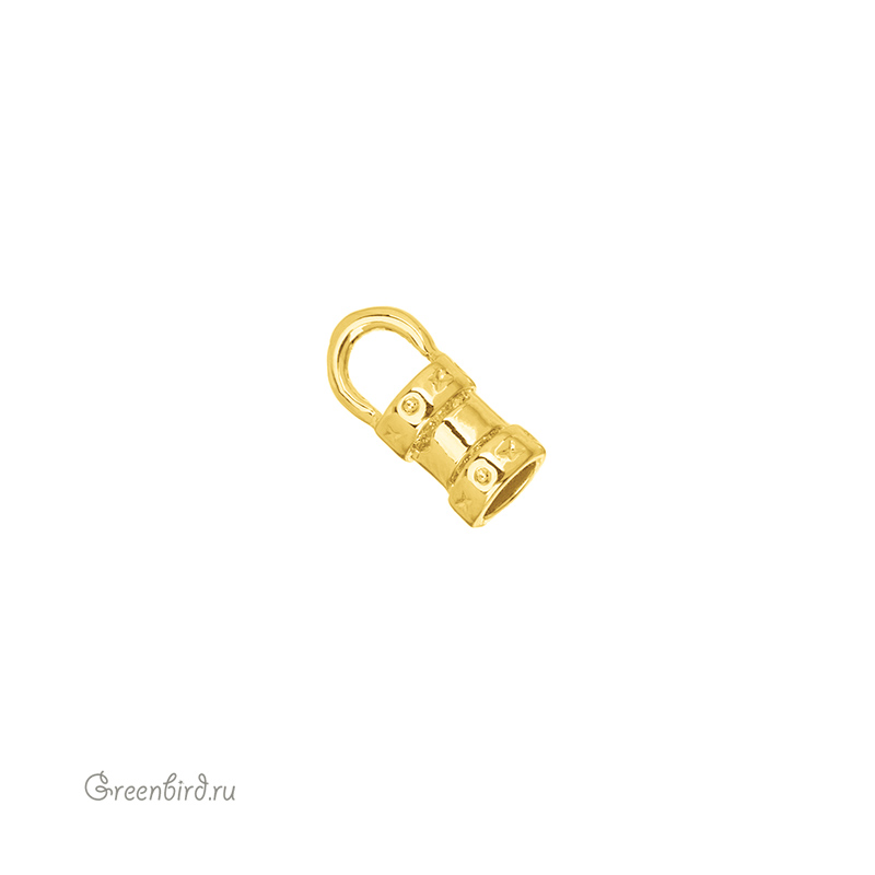 Концевик-кримп с колечком - зажимной наконечник для шнура. Внешний размер с колечком: 10,3 х 4,5 мм; отверстие: 3 мм, внутренний размер колечка: 3 мм. Материал: латунь, покрытие: золото. Производство: Китай. Цена указана за 1 штуку.