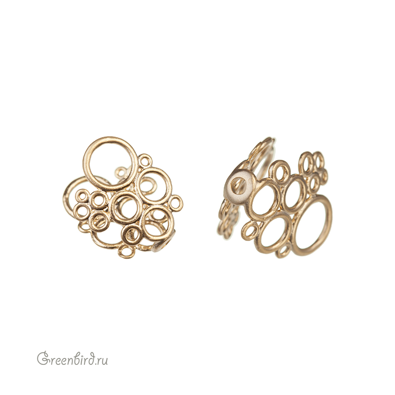 Фурнитура для бижутерии - декоративная ажурная шапочка для бусин с вертикальным отверстием или для плоских подвесок. Материал: латунь, покрытие: матовое золото. Общий размер: 11,5 х 15 мм, толщина в сомкнутом состоянии: 4,2 мм, минимальная внутренняя ширина: 2,2 мм, отверстие: 1,5 мм. Производство: Корея. Цена указана за 1 штуку.