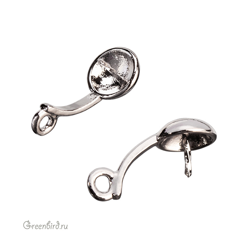 Фурнитура для бижутерии - компонент для вклеивания бусин. Материал: латунь, покрытие: родий. Диаметр чашечки: 5,4 мм, общий размер: 12,1 х 5,4 х 4,8 мм, колечко: 1,15 мм, штырек: 0,6 х 3,6 мм. Подходит для бусин 4 мм и хлопкового жемчуга 1-1,5 см. Производство: Корея. Цена указана за 1 штуку.