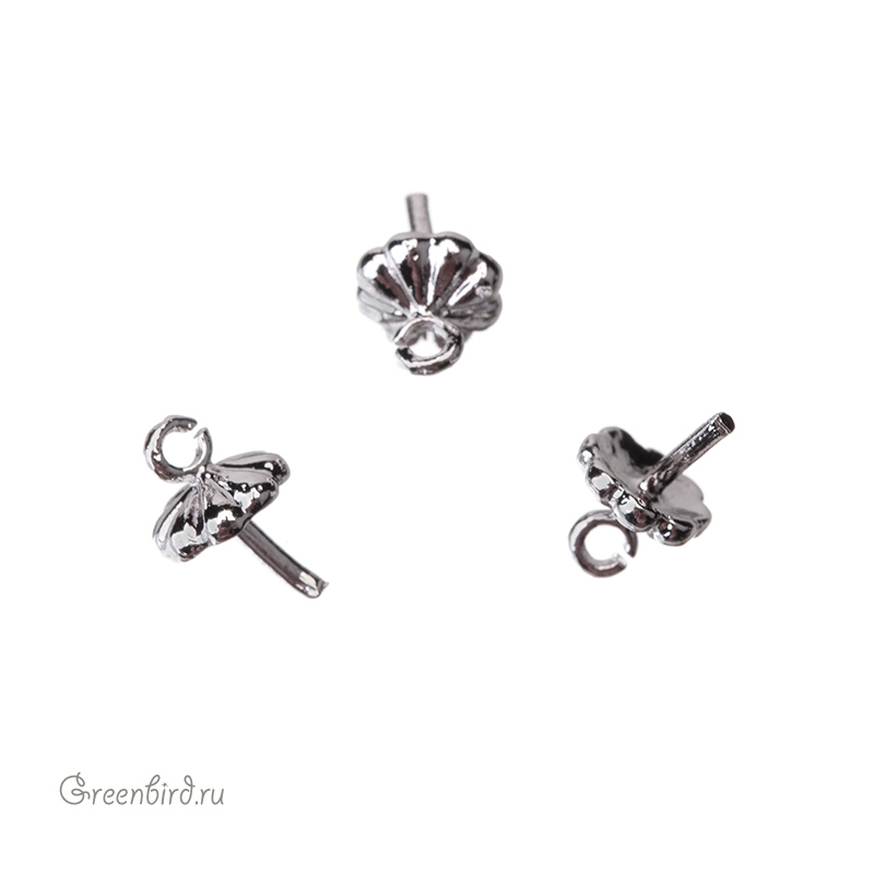 Фурнитура для бижутерии - компонент для вклеивания полупросверленного жемчуга. Материал: латунь, покрытие: родий. Размер декоративного элемента: 5,4 х 4,6 мм, длина штырька: 2,2 мм, толщина штырька: 0,7 мм. Подходит для жемчуга 6, 8, 10 и 12 мм. Производство: Корея. Цена указана за 1 штуку.