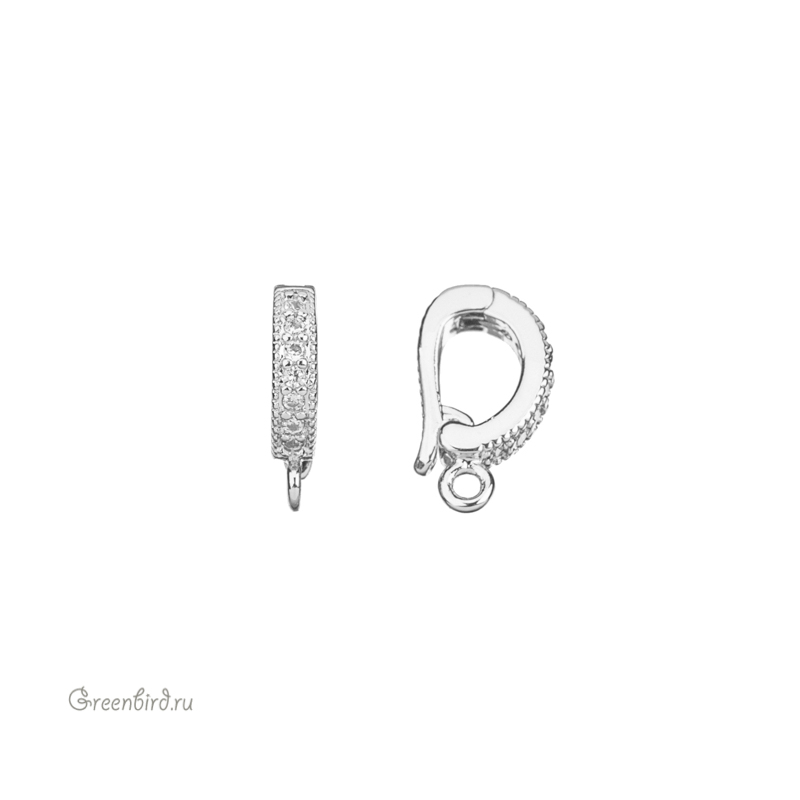 Фурнитура для бижутерии - бейл-замочек (разъемный бейл с застежкой по типу часового замка) с фианитами. Материал: латунь, покрытие: родий. Размер с колечком: 2,7 х 12,5 мм, внутренний размер: 4,3 х 5 мм, внутренний размер колечка: 1,2 мм. Производство: Китай. Цена указана за 1 шт.