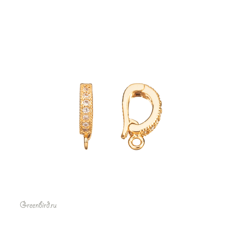 Фурнитура для бижутерии - бейл-замочек (разъемный бейл с застежкой по типу часового замка) с фианитами. Материал: латунь, покрытие: золото. Размер с колечком: 2,7 х 12,5 мм, внутренний размер: 4,3 х 5 мм, внутренний размер колечка: 1,2 мм. Производство: Китай. Цена указана за 1 шт.