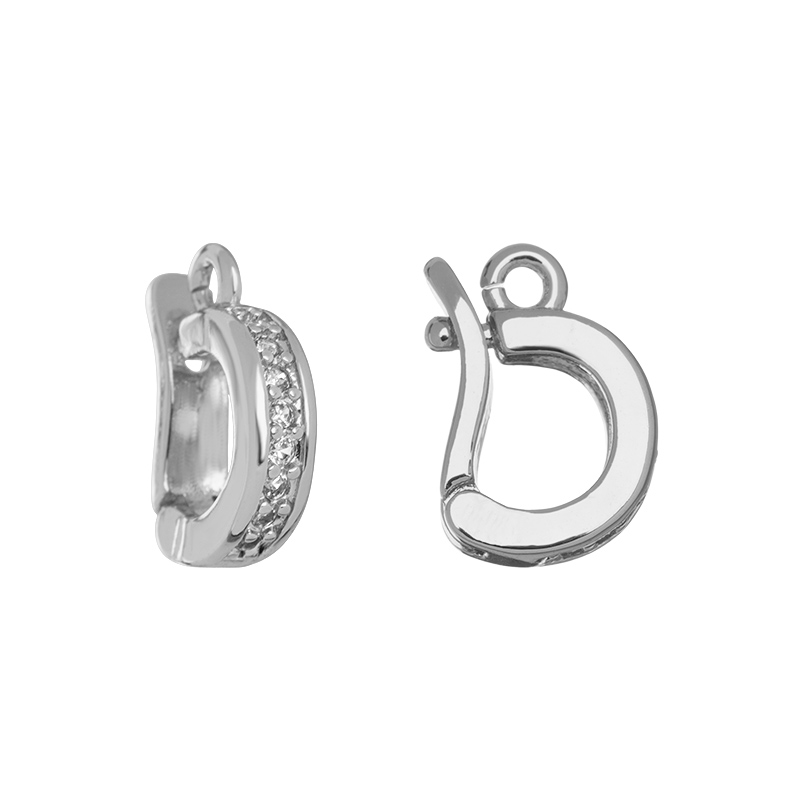 Фурнитура для бижутерии - бейл-замочек (разъемный бейл с застежкой по типу часового замка) с фианитами. Материал: латунь, покрытие: родий. Размер с колечком: 2,4 х 12 мм, внутренний размер: 4,5 х 5,7 мм, внутренний диаметр колечка: 1,2 мм. Производство: Китай. Цена указана за 1 шт.