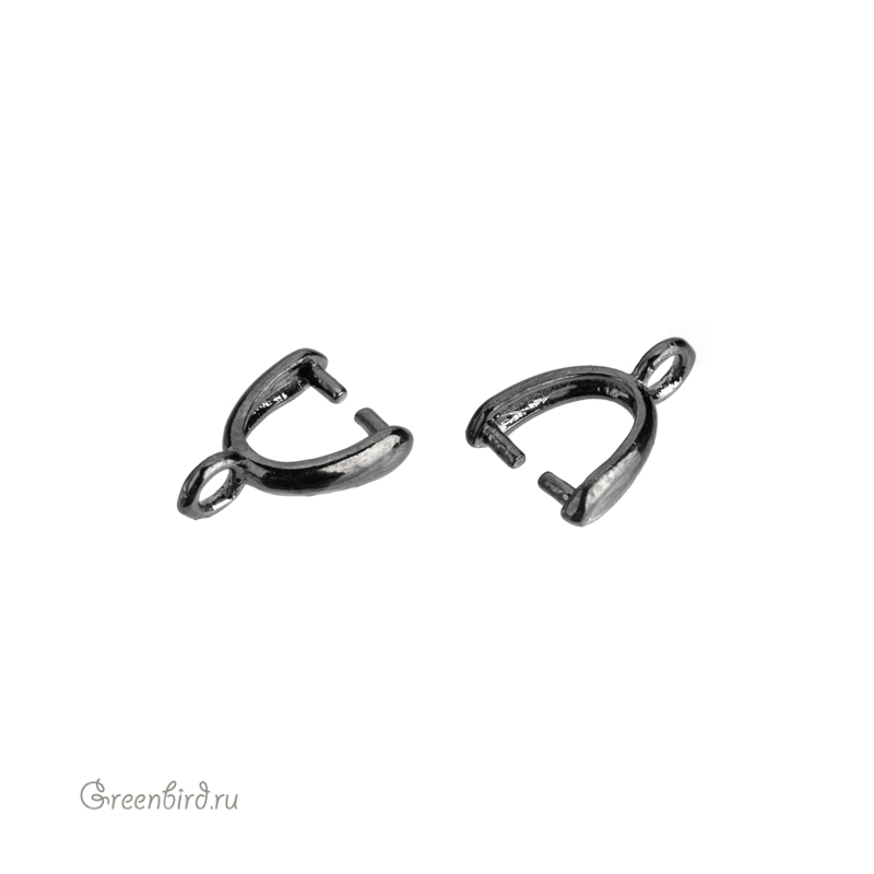Фурнитура для бижутерии - бейл-зажим. Материал: латунь, покрытие: gunmetal (оружейная сталь). Размер зажима: 7,7 х 7,6 мм, ширина: примрено 2,8 мм, высота с колечком: 10,9 мм, внутренний размер колечка: 1,9 мм, толщина штырьков: 0,9 мм. Производство: Китай. Цена указана за 1 шт.