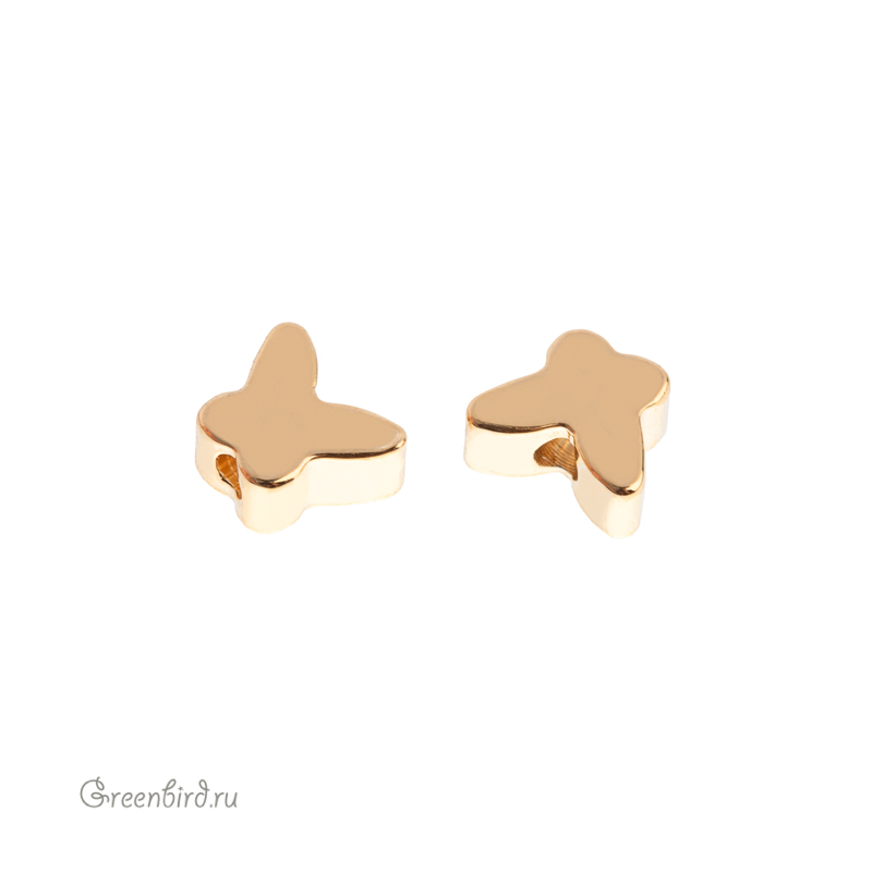 Металлическая бусина в форме бабочки с вертикальным отверстием. Материал: латунь, покрытие: золото. Размер: 6 х 5 мм, толщина: 2,7 мм, диаметр отверстия: 1,1 мм. Производство: Китай. Цена указана за 1 шт.