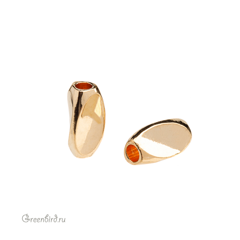 Металлическая бусина гладкая с тремя овальными гранями. Материал: латунь, покрытие: золото. Размер: 8,2 х 4,1 мм, диаметр отверстия: 1,9 мм. Размеры могут незначительно отличаться. Производство: Китай. Цена указана за 1 шт.