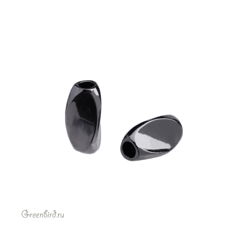 Металлическая бусина гладкая с тремя овальными гранями. Материал: латунь, покрытие: gunmetal (оружейная сталь). Размер: 8,2 х 4,1 мм, диаметр отверстия: 1,9 мм. Размеры могут незначительно отличаться. Производство: Китай. Цена указана за 1 шт.