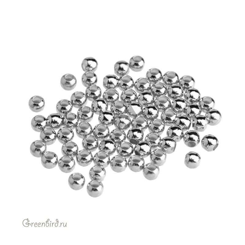 Металлические бусины круглые полые. Цвет: родий. Размер: 2,6 х 3 мм, отверстие примерно 1,3 мм. Размеры могут незначительно отличаться. Производство: Китай. Цена указана за 2 грамма (примерно 49 штук).